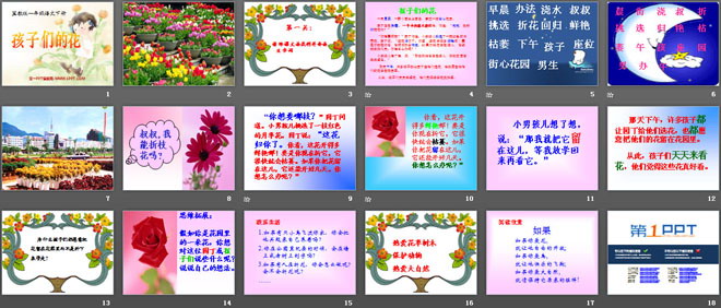 关键词:孩子们的花教学课件,冀教版一年级下册语文PPT课件下载,一年级语文幻灯片课件下载,孩子们的花PPT课件下载,.PPT格式;