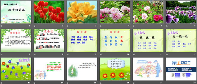 关键词:孩子们的花教学课件,冀教版一年级下册语文PPT课件下载,一年级语文幻灯片课件下载,孩子们的花PPT课件下载,.PPT格式;