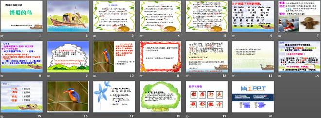 关键词:搭船的鸟教学课件,冀教版二年级上册语文PPT课件下载,二年级语文幻灯片课件下载,搭船的鸟PPT课件下载,.PPT格式;