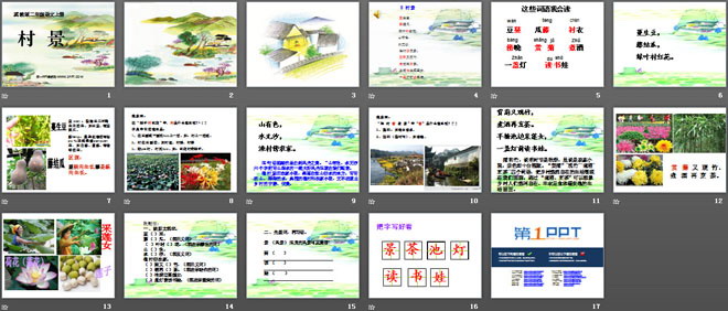 关键词:村景教学课件,冀教版二年级上册语文PPT课件下载,二年级语文幻灯片课件下载,村景PPT课件下载,.PPT格式;