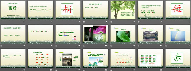 关键词:雨后教学课件,冀教版二年级上册语文PPT课件下载,二年级语文幻灯片课件下载,雨后PPT课件下载,.PPT格式;