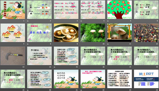 关键词:采蘑菇的小姑娘教学课件,冀教版二年级上册语文PPT课件下载,二年级语文幻灯片课件下载,采蘑菇的小姑娘PPT课件下载,.PPT格式;