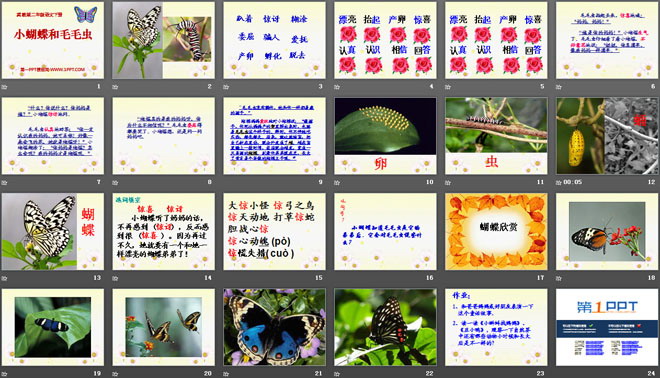 关键词:小蝴蝶和毛毛虫教学课件,冀教版二年级下册语文PPT课件下载,二年级语文幻灯片课件下载,小蝴蝶和毛毛虫PPT课件下载,.PPT格式;