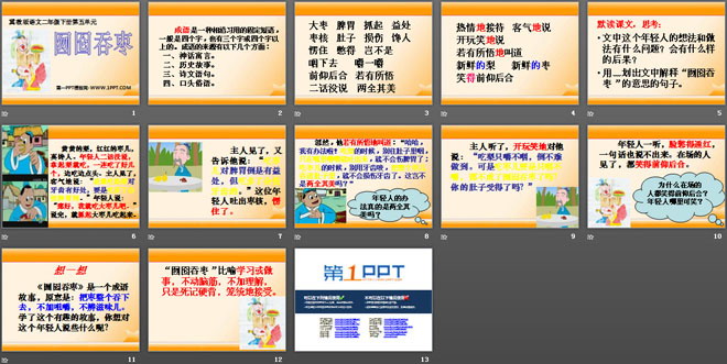 关键词:囫囵吞枣教学课件,冀教版二年级下册语文PPT课件下载,二年级语文幻灯片课件下载,囫囵吞枣PPT课件下载,.PPT格式;