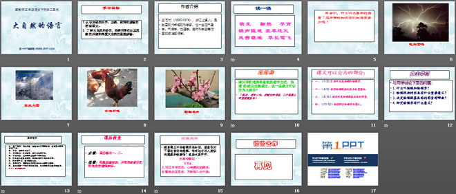 关键词:大自然的语言教学课件,冀教版三年级下册语文PPT课件下载,三年级语文幻灯片课件下载,大自然的语言PPT课件下载,.PPT格式;