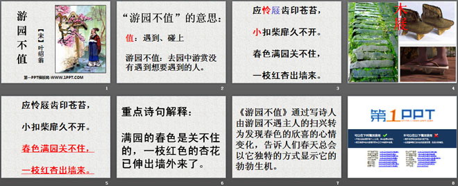 关键词:游园不值教学课件,冀教版三年级下册语文PPT课件下载,三年级语文幻灯片课件下载,游园不值PPT课件下载,.PPT格式;