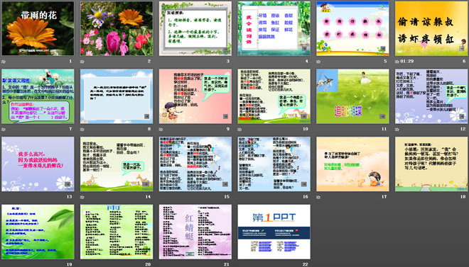 关键词:带雨的花教学课件,冀教版三年级下册语文PPT课件下载,三年级语文幻灯片课件下载,带雨的花PPT课件下载,.PPT格式;