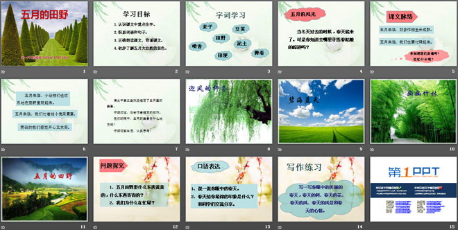关键词:五月的田野教学课件,冀教版三年级下册语文PPT课件下载,三年级语文幻灯片课件下载,五月的田野PPT课件下载,.PPT格式;
