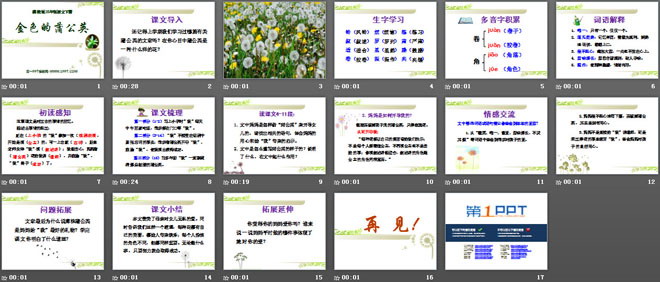 关键词:金色的蒲公英教学课件,冀教版三年级下册语文PPT课件下载,三年级语文幻灯片课件下载,金色的蒲公英PPT课件下载,.PPT格式;