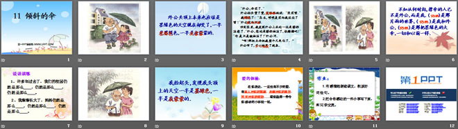 关键词:倾斜的伞教学课件,冀教版三年级下册语文PPT课件下载,三年级语文幻灯片课件下载,倾斜的伞PPT课件下载,.PPT格式;