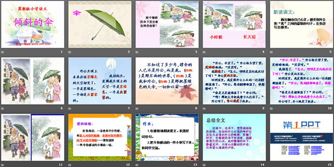 关键词:倾斜的伞教学课件,冀教版三年级下册语文PPT课件下载,三年级语文幻灯片课件下载,倾斜的伞PPT课件下载,.PPT格式;