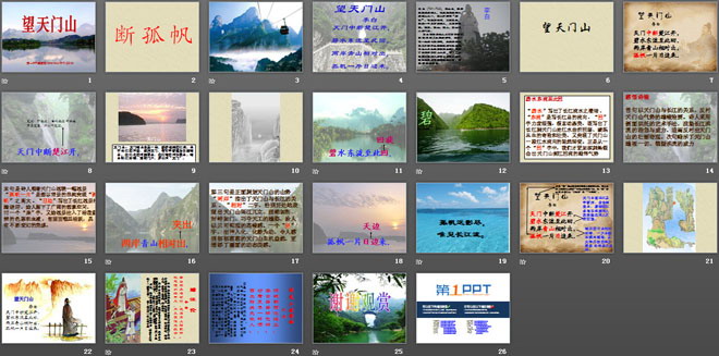 关键词:望天门山教学课件,冀教版四年级上册语文PPT课件下载,四年级语文幻灯片课件下载,望天门山PPT课件下载,.PPT格式;