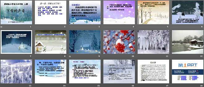关键词:下雪的声音教学课件,冀教版四年级上册语文PPT课件下载,四年级语文幻灯片课件下载,下雪的声音PPT课件下载,.PPT格式;