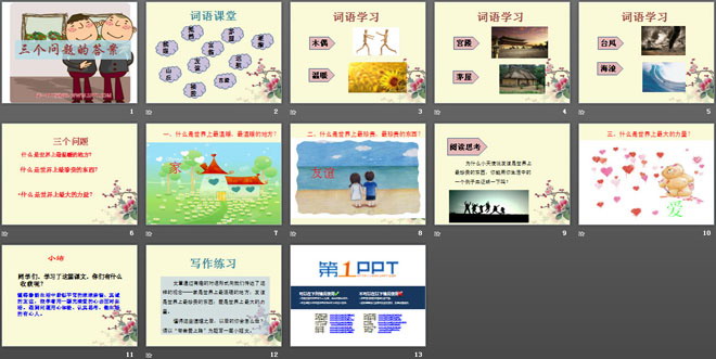 关键词:三个问题的答案教学课件,冀教版三年级下册语文PPT课件下载,三年级语文幻灯片课件下载,三个问题的答案PPT课件下载,.PPT格式;