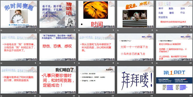 关键词:和时间赛跑教学课件,冀教版四年级上册语文PPT课件下载,四年级语文幻灯片课件下载,和时间赛跑PPT课件下载,.PPT格式;