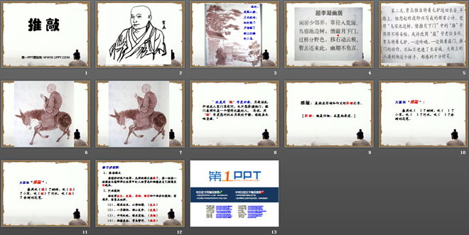 关键词:推敲教学课件,冀教版四年级上册语文PPT课件下载,四年级语文幻灯片课件下载,推敲PPT课件下载,.PPT格式;