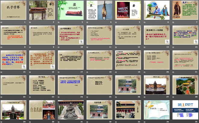 关键词:孔子学琴教学课件,冀教版四年级上册语文PPT课件下载,四年级语文幻灯片课件下载,孔子学琴PPT课件下载,.PPT格式;