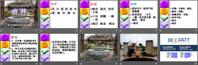 关键词:古井教学课件,冀教版四年级上册语文PPT课件下载,四年级语文幻灯片课件下载,古井PPT课件下载,.PPT格式;