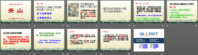 关键词:登山教学课件,冀教版四年级上册语文PPT课件下载,四年级语文幻灯片课件下载,登山PPT课件下载,.PPT格式;
