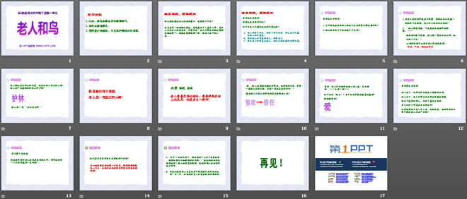 关键词:老人和鸟教学课件,冀教版四年级下册语文PPT课件下载,四年级语文幻灯片课件下载,老人和鸟PPT课件下载,.PPT格式;