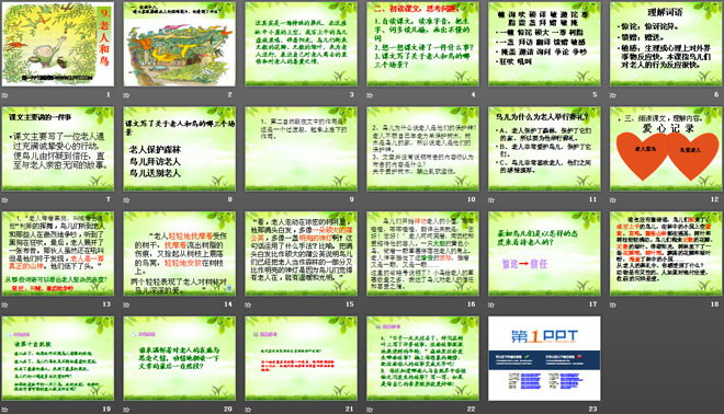 关键词:老人和鸟教学课件,冀教版四年级下册语文PPT课件下载,四年级语文幻灯片课件下载,老人和鸟PPT课件下载,.PPT格式;