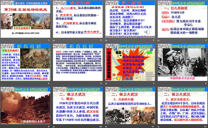 关键词:部编人教版八年级上册历史PPT课件免费下载,正面战场的抗战PPT下载,.PPT格式;