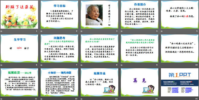 关键词:别踩了这朵花教学课件,冀教版四年级下册语文PPT课件下载,四年级语文幻灯片课件下载,别踩了这朵花PPT课件下载,.PPT格式;