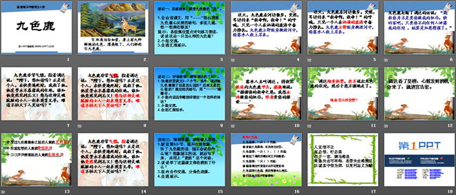 关键词:九色鹿教学课件,冀教版五年级上册语文PPT课件下载,五年级语文幻灯片课件下载,九色鹿PPT课件下载,.PPT格式;