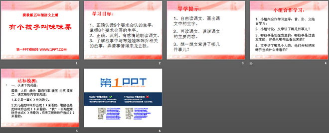 关键词:有个孩子叫咪咪乔教学课件,冀教版五年级上册语文PPT课件下载,五年级语文幻灯片课件下载,有个孩子叫咪咪乔PPT课件下载,.PPT格式;