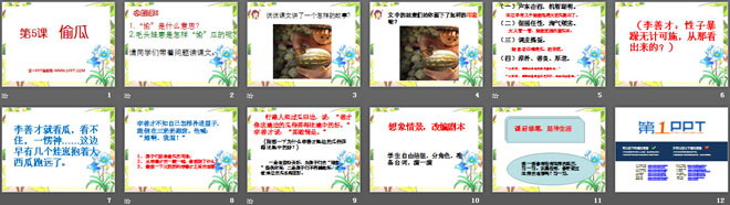 关键词:偷瓜教学课件,冀教版五年级下册语文PPT课件下载,五年级语文幻灯片课件下载,偷瓜PPT课件下载,.PPT格式;