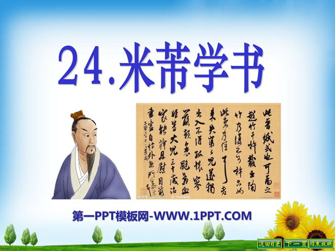 关键词:米芾学书教学课件,冀教版五年级下册语文PPT课件下载,五年级语文幻灯片课件下载,米芾学书PPT课件下载,.PPT格式;