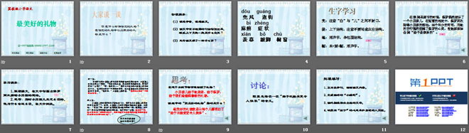 关键词:最美好的礼物教学课件,冀教版六年级上册语文PPT课件下载,六年级语文幻灯片课件下载,最美好的礼物PPT课件下载,.PPT格式;