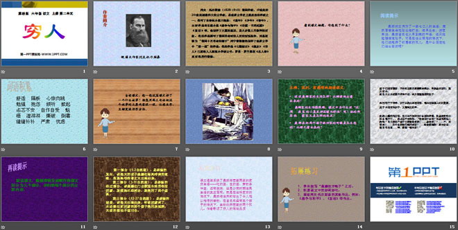 关键词:穷人教学课件,冀教版六年级上册语文PPT课件下载,六年级语文幻灯片课件下载,穷人PPT课件下载,.PPT格式;