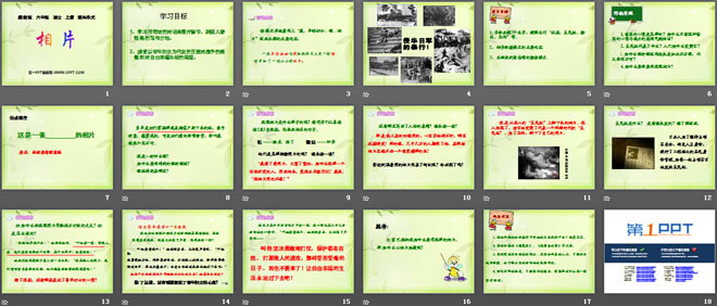 关键词:相片教学课件,冀教版六年级上册语文PPT课件下载,六年级语文幻灯片课件下载,相片PPT课件下载,.PPT格式;