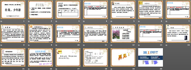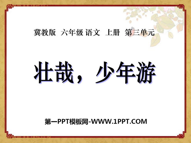 关键词:壮哉少年游教学课件,冀教版六年级上册语文PPT课件下载,六年级语文幻灯片课件下载,壮哉少年游PPT课件下载,.PPT格式;