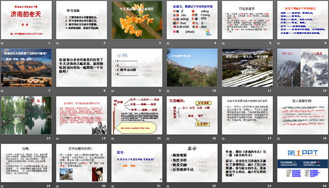 关键词:济南的冬天教学课件,冀教版六年级下册语文PPT课件下载,六年级语文幻灯片课件下载,济南的冬天PPT课件下载,.PPT格式;