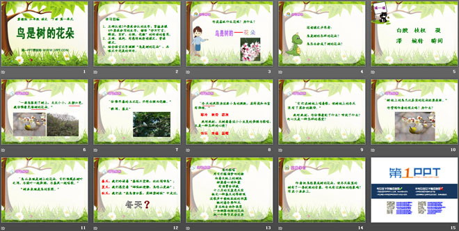 关键词:鸟是树的花朵教学课件,冀教版六年级下册语文PPT课件下载,六年级语文幻灯片课件下载,鸟是树的花朵PPT课件下载,.PPT格式;