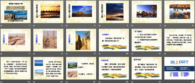 关键词:楼兰的忧郁教学课件,冀教版六年级下册语文PPT课件下载,六年级语文幻灯片课件下载,楼兰的忧郁PPT课件下载,.PPT格式;