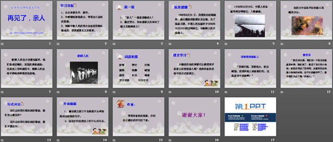 关键词:再见了亲人教学课件,冀教版六年级下册语文PPT课件下载,六年级语文幻灯片课件下载,再见了亲人PPT课件下载,.PPT格式;