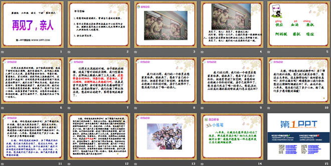 关键词:再见了亲人教学课件,冀教版六年级下册语文PPT课件下载,六年级语文幻灯片课件下载,再见了亲人PPT课件下载,.PPT格式;