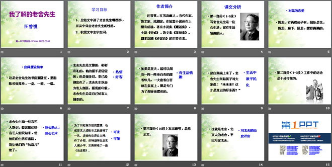 关键词:我了解的老舍先生教学课件,冀教版六年级下册语文PPT课件下载,六年级语文幻灯片课件下载,我了解的老舍先生PPT课件下载,.PPT格式;