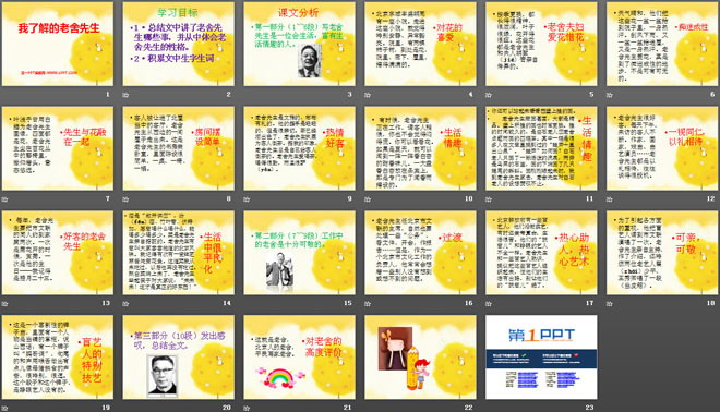 关键词:我了解的老舍先生教学课件,冀教版六年级下册语文PPT课件下载,六年级语文幻灯片课件下载,我了解的老舍先生PPT课件下载,.PPT格式;