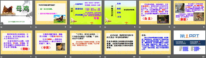 关键词:母鸡教学课件,冀教版六年级下册语文PPT课件下载,六年级语文幻灯片课件下载,母鸡PPT课件下载,.PPT格式;