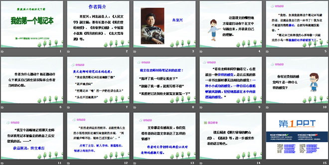 关键词:我的第一个笔记本教学课件,冀教版六年级下册语文PPT课件下载,六年级语文幻灯片课件下载,我的第一个笔记本PPT课件下载,.PPT格式;