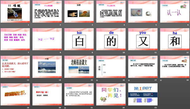 关键词:项链教学课件,2016人教版一年级上册语文PPT课件下载,一年级语文幻灯片课件下载,项链PPT课件下载,.PPT格式;