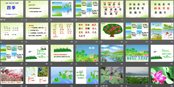 关键词:四季教学课件,2016人教版一年级上册语文PPT课件下载,一年级语文幻灯片课件下载,四季PPT课件下载,.PPT格式;