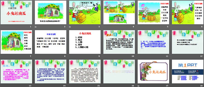 关键词:口语交际教学课件,小兔运南瓜教学课件,2016人教版一年级上册语文PPT课件下载,一年级语文幻灯片课件下载,口语交际PPT课件下载,小兔运南瓜PPT课件下载,.PPT格式;