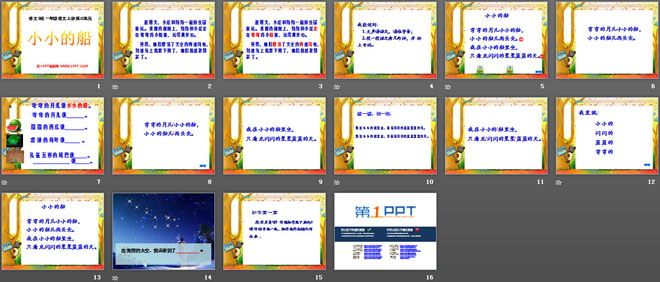 关键词:小小的船教学课件,语文S版一年级上册语文课件,一年级语文幻灯片课件下载,小小的船PPT课件下载,.ppt格式