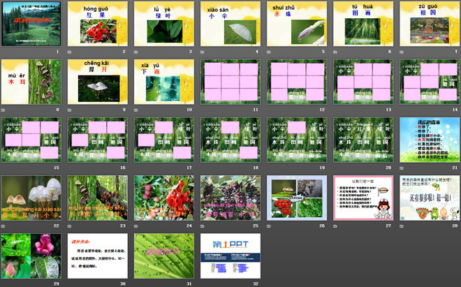 关键词:雨后的森林教学课件,语文S版一年级上册语文课件,一年级语文幻灯片课件下载,雨后的森林PPT课件下载,.ppt格式