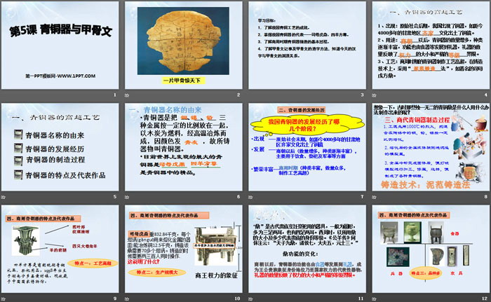 关键词:部编人教版七年级上册历史PPT课件免费下载,青铜器与甲骨文PPT下载,.PPT格式;